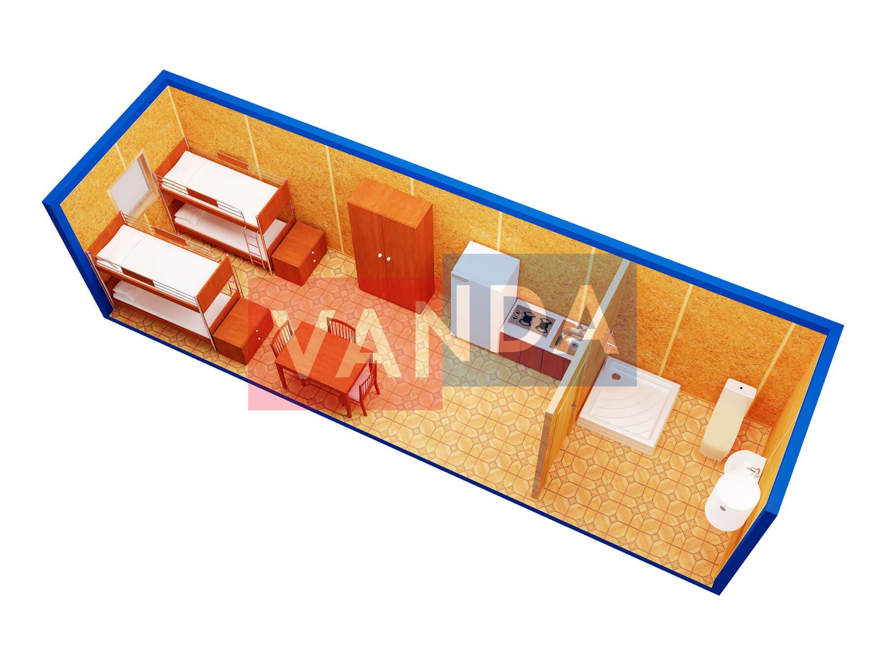 Блок контейнер металлический с 8 кроватями