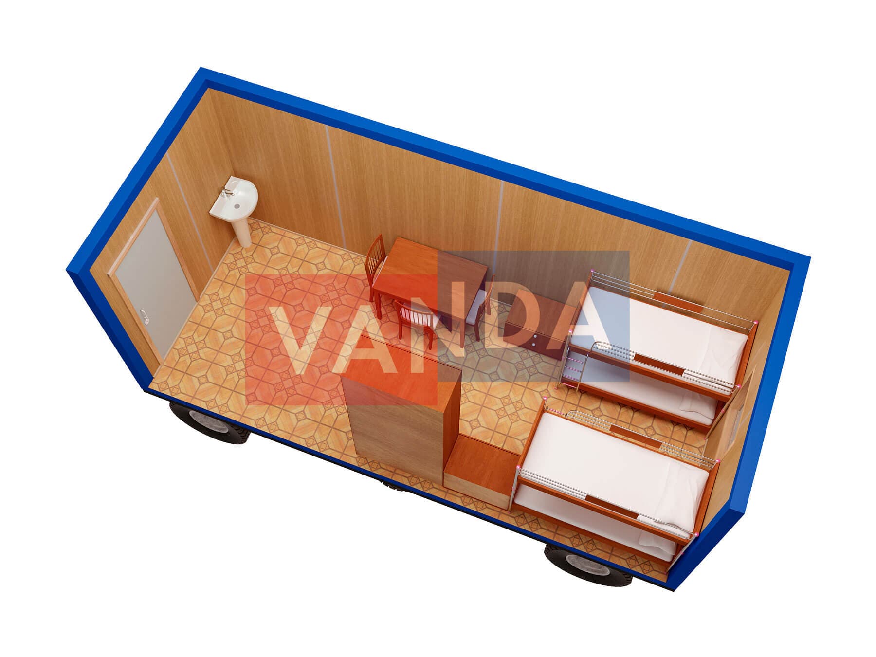 Металлическая бытовка с кухней в тамбуре 5,85 x 2,4 - Оргалит ДВП