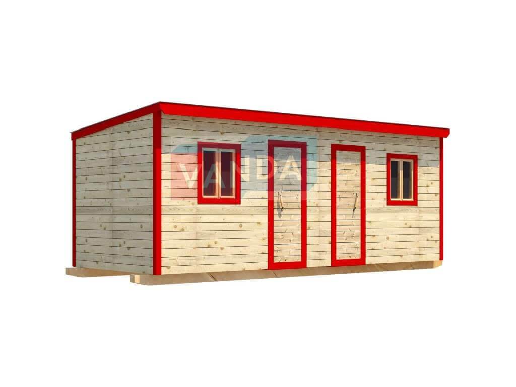 Строительная бытовка со сборкой на месте №6 (вариант 1) изготавливается из качественных материалов: обвязочный венец (сани): брус 100х150 мм., половые лаги: обрезная доска 40х150 мм., через 80 см. (плашмя), черновые полы: обрезная доска 20 мм. (2 сорт), (не сплошной настил, через 10 - 15 см.), чистовой пол покрыт: ДСП строительное 16 мм.. Для изготовления каркаса и перегородок используется: брусок 40х50 мм.. Для стропил используется: обрезная доска 40х150 мм., на кровлю ложится: оцинкованный профлист. Качественная наружная отделка: Имитация бруса, внутренняя отделка стен: Оргалит-ДВП, внутренняя отделка потолка: Оргалит-ДВП. Выполнено утепление: Минеральная вата «ISOVER» – 50 мм. и пароизоляция: плёнка техническая. Бытовка комплектуется окнами: деревянное, двустворчатое, одинарное остекление 800х800 мм., входной дверью: деревянная, наборная и внутренними дверями: деревянная, наборная (при наличии перегородки).