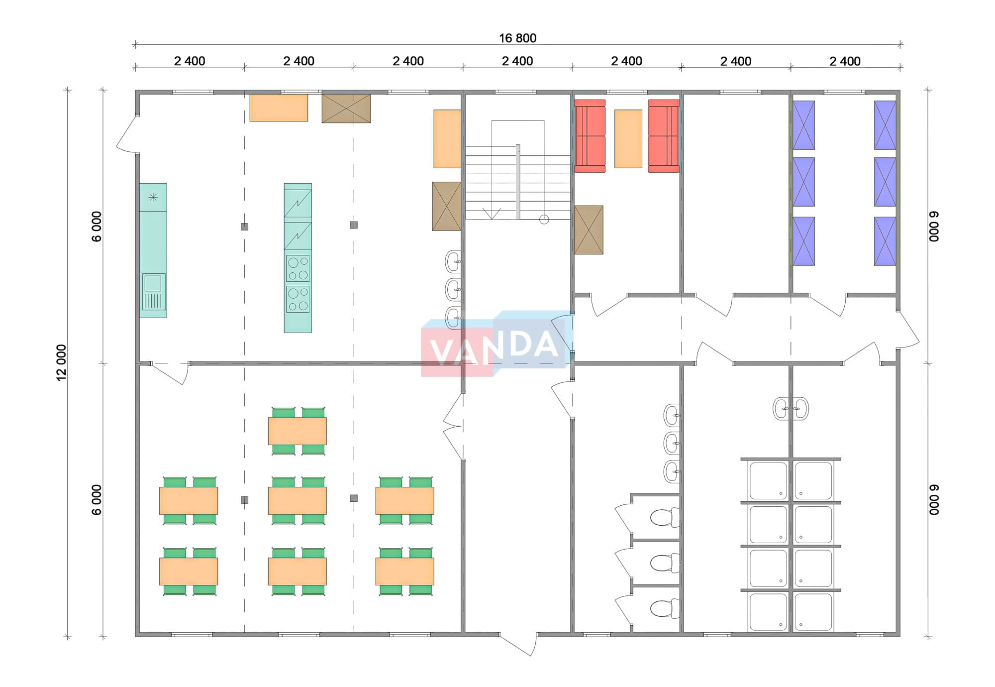 • Габаритные размеры - стандартные размеры одного модульного здания (наружные): Длина: 6 м Ширина: 2,45 м Высота: 2,5 м.