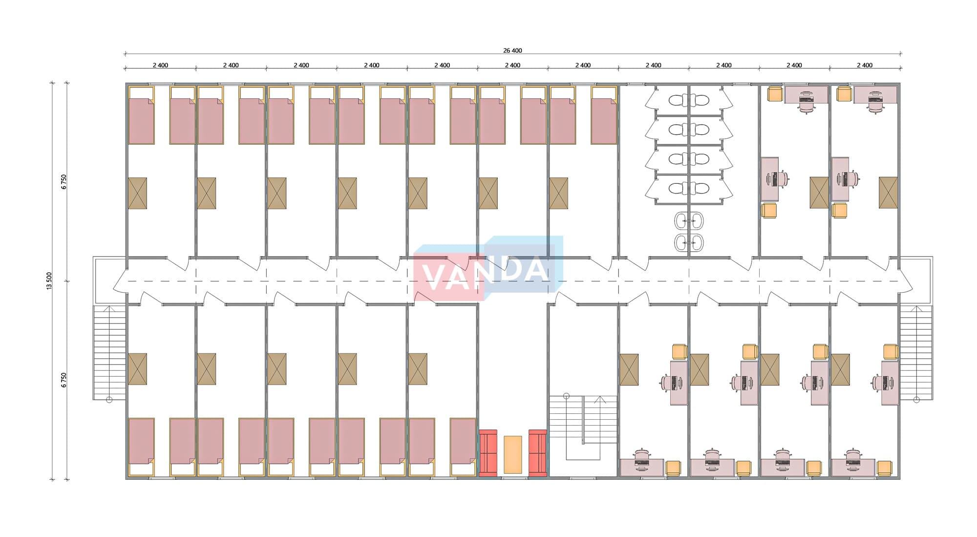 ПРОЕКТ МОДУЛЬНОГО АДМИНИСТРАТИВНО – БЫТОВОГО КОМПЛЕКСА 13,5х26,4 Панели МДФ