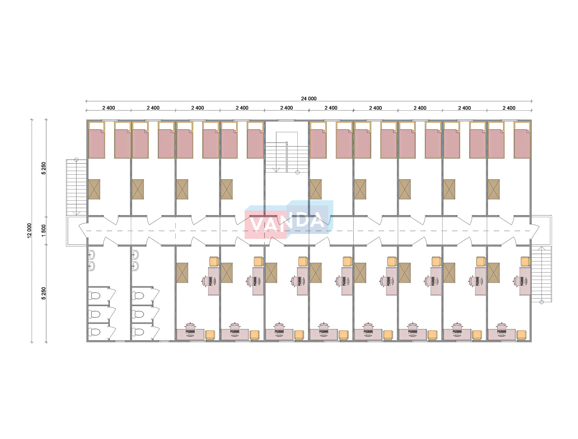 • Габаритные размеры - стандартные размеры одного модульного здания (наружные): Длина: 6 м Ширина: 2,45 м Высота: 2,5 м.