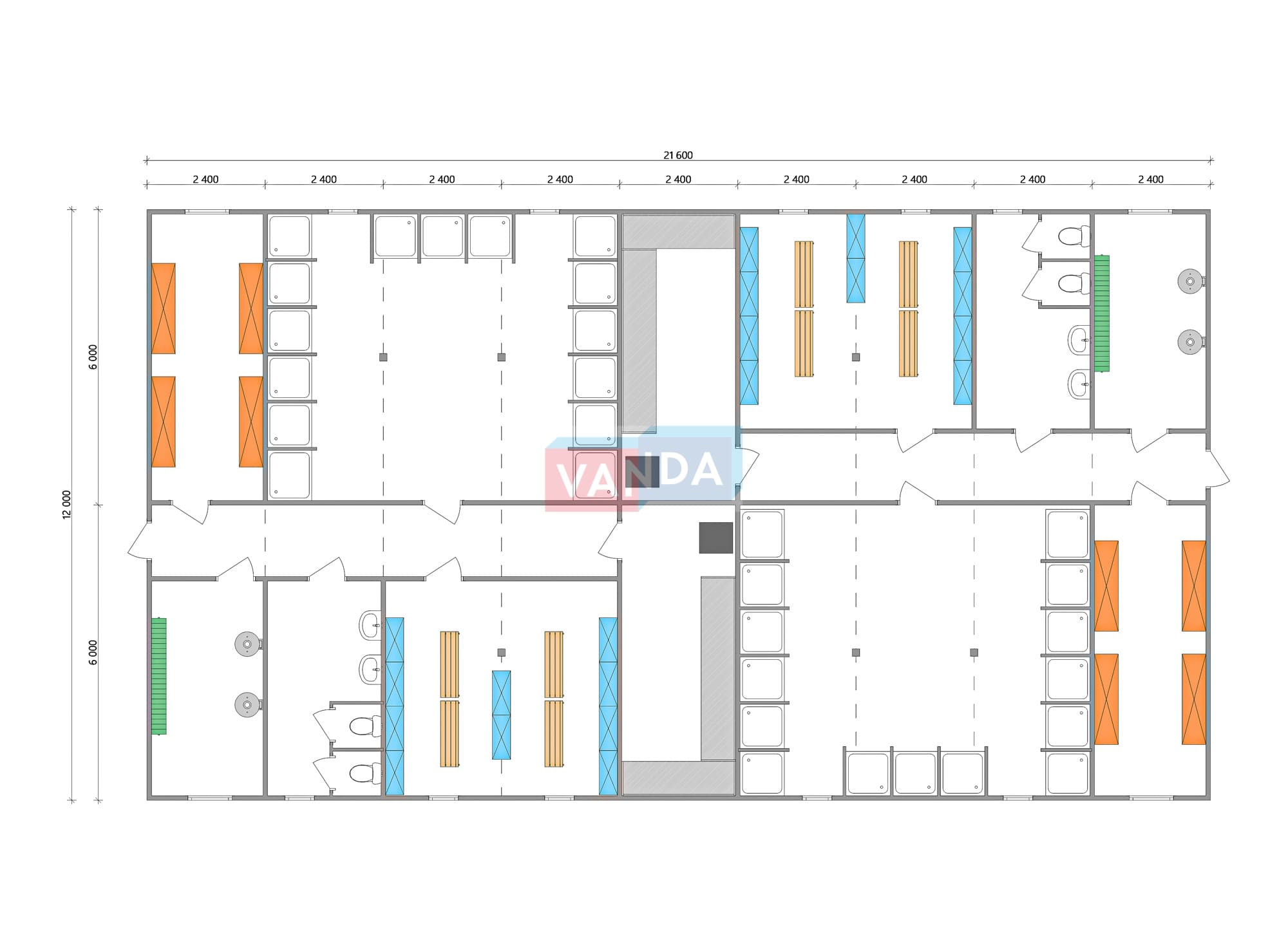 • Габаритные размеры - стандартные размеры одного модульного здания (наружные): Длина: 6м Ширина: 2,4 м Высота: 2,5 м