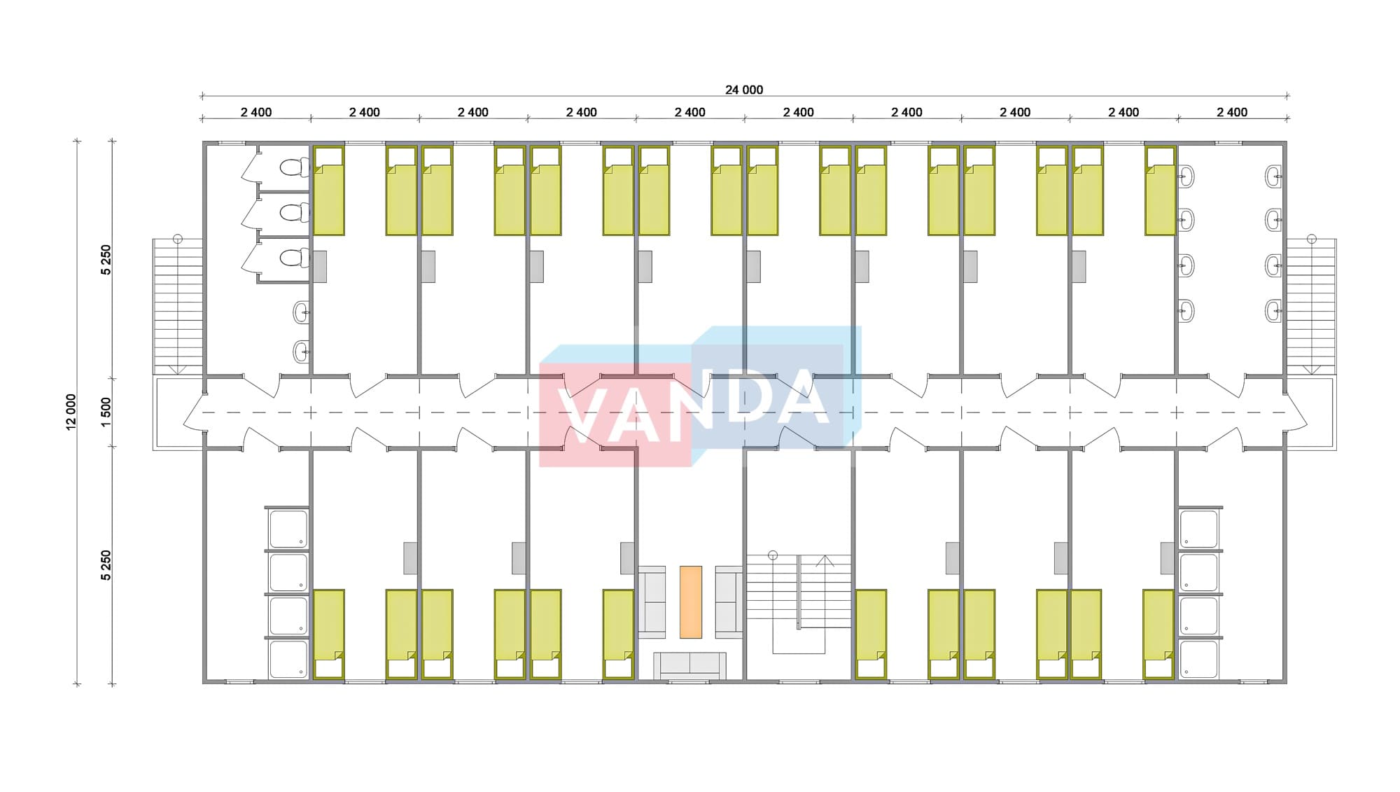 Проект общежития из блок контейнеров 12x24 ЛДСП