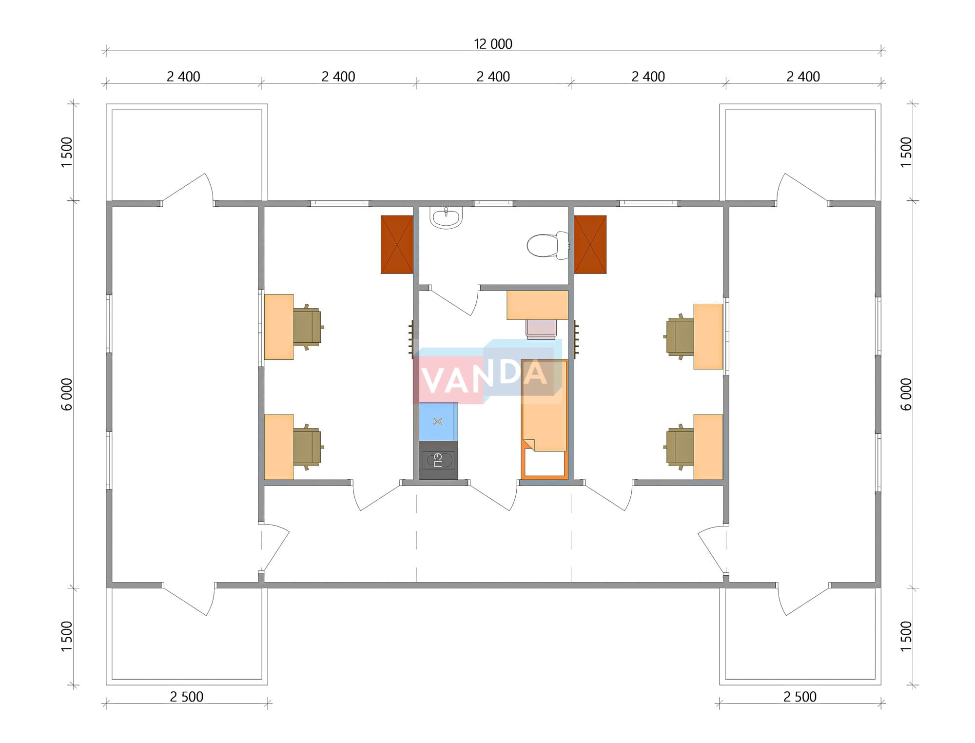 • Габаритные размеры - стандартные размеры одного модульного здания (наружные): Длина: 6 м Ширина: 2,45 м Высота: 2,5 м.