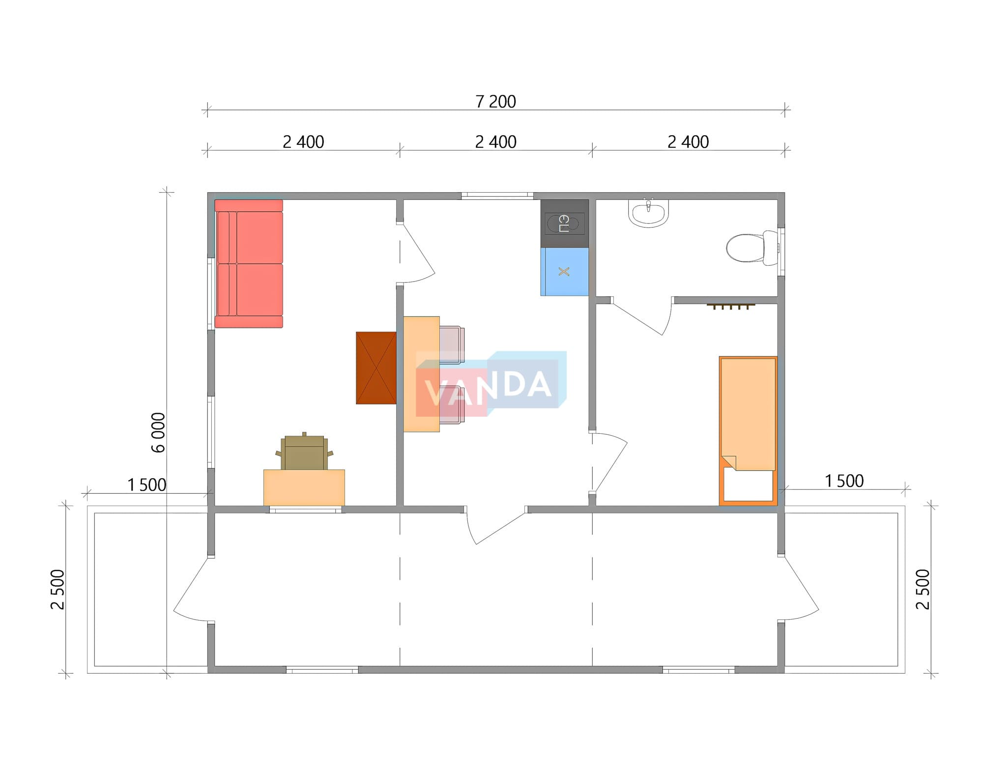 • Габаритные размеры - стандартные размеры одного модульного здания (наружные): Длина: 6 м Ширина: 2,45 м Высота: 2,5 м.
