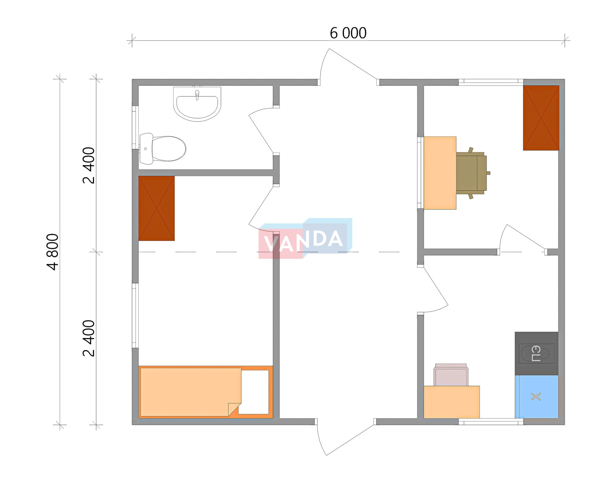 Модульная бытовка с плоской крышей 4.8х6.0