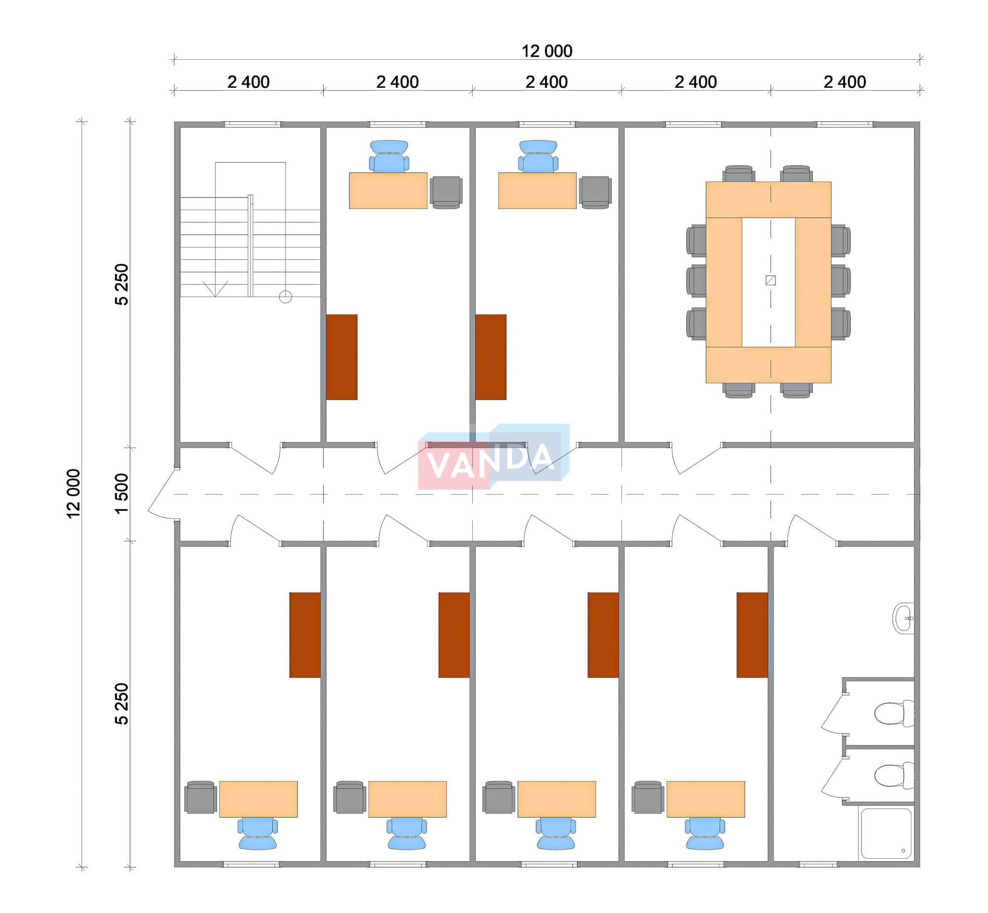 • Габаритные размеры - стандартные размеры одного модульного здания (наружные): Длина: 6 м Ширина: 2,4 м Высота: 2,5 м.