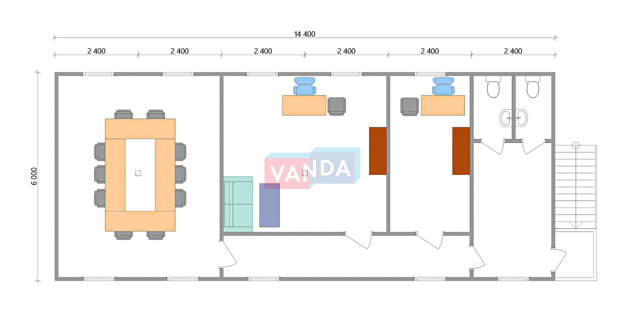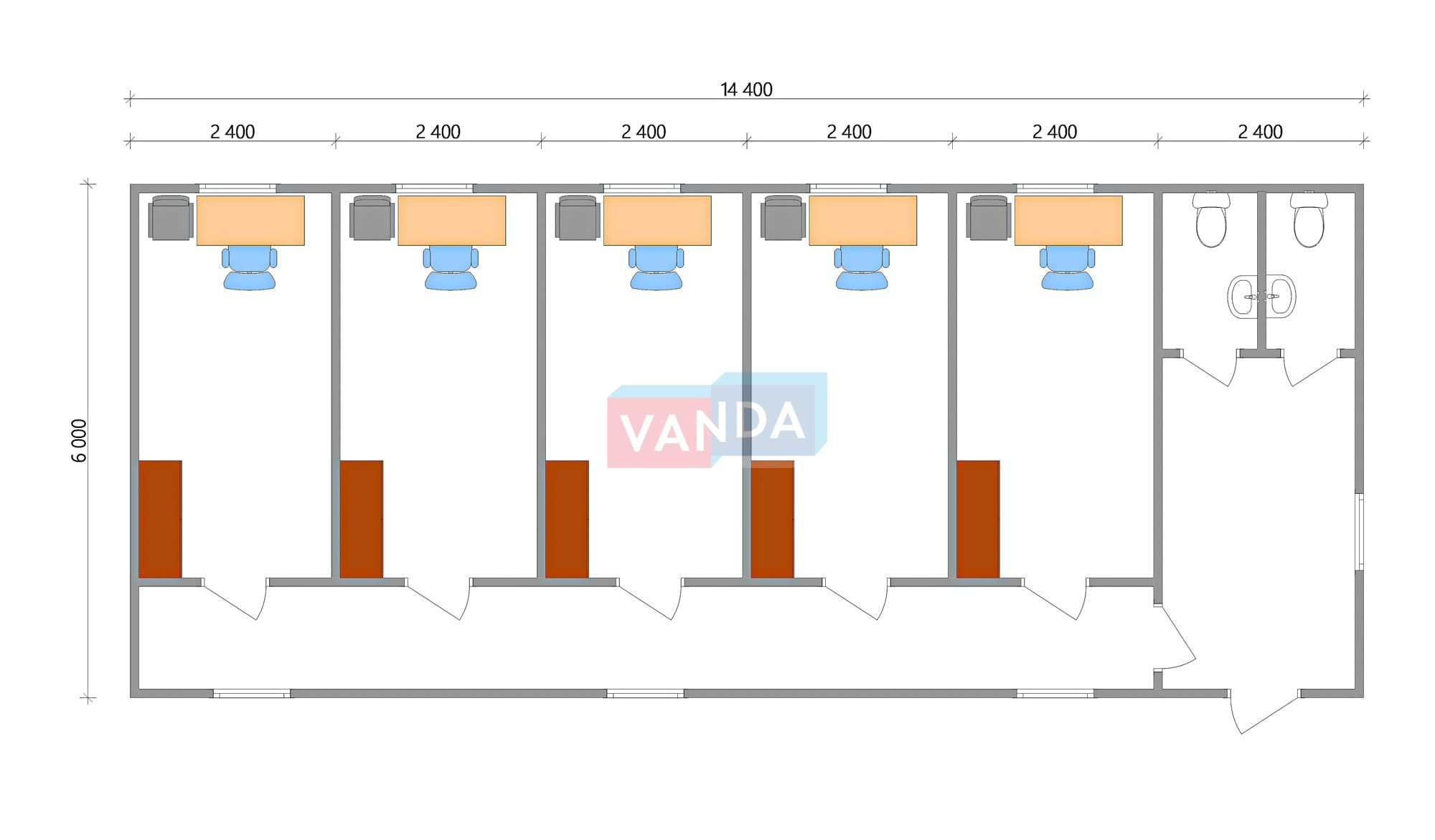 • Габаритные размеры - стандартные размеры одного модульного здания (наружные): Длина: 6 м Ширина: 2,4 м Высота: 2,5 м.