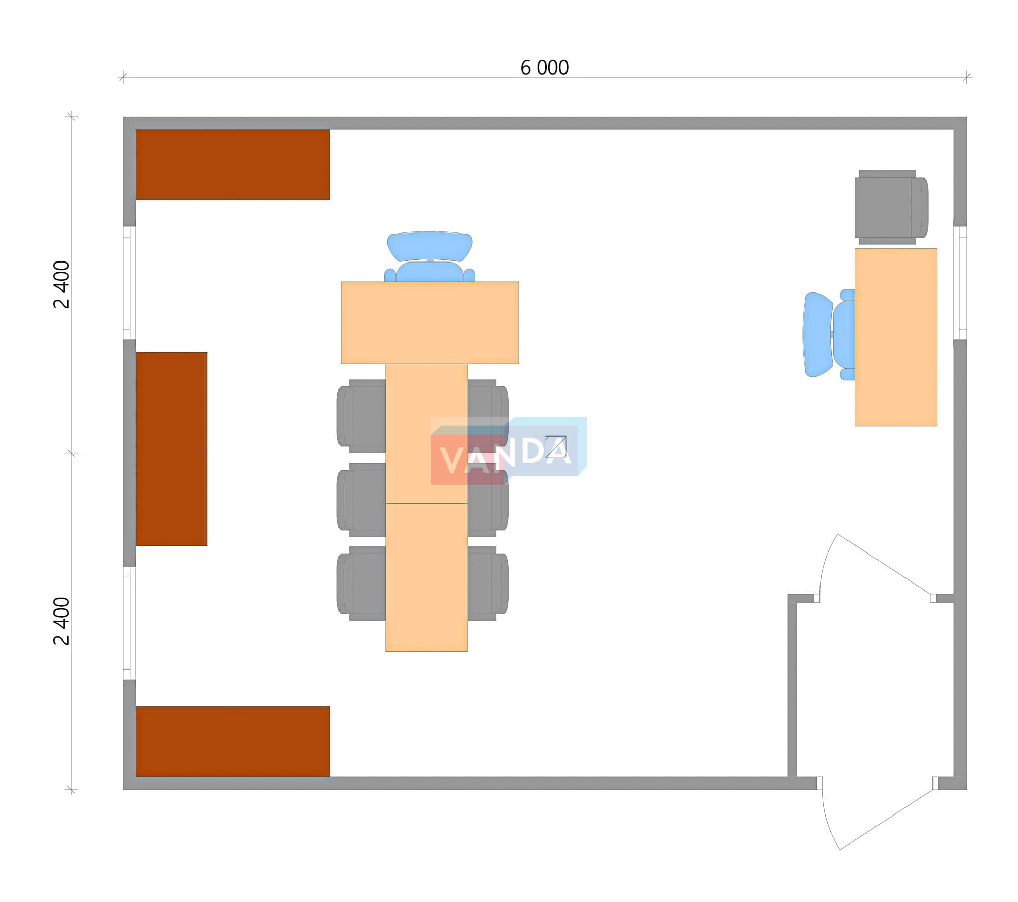 Блок-контейнер офисный, двухкомнатный №2 (вариант 2)
