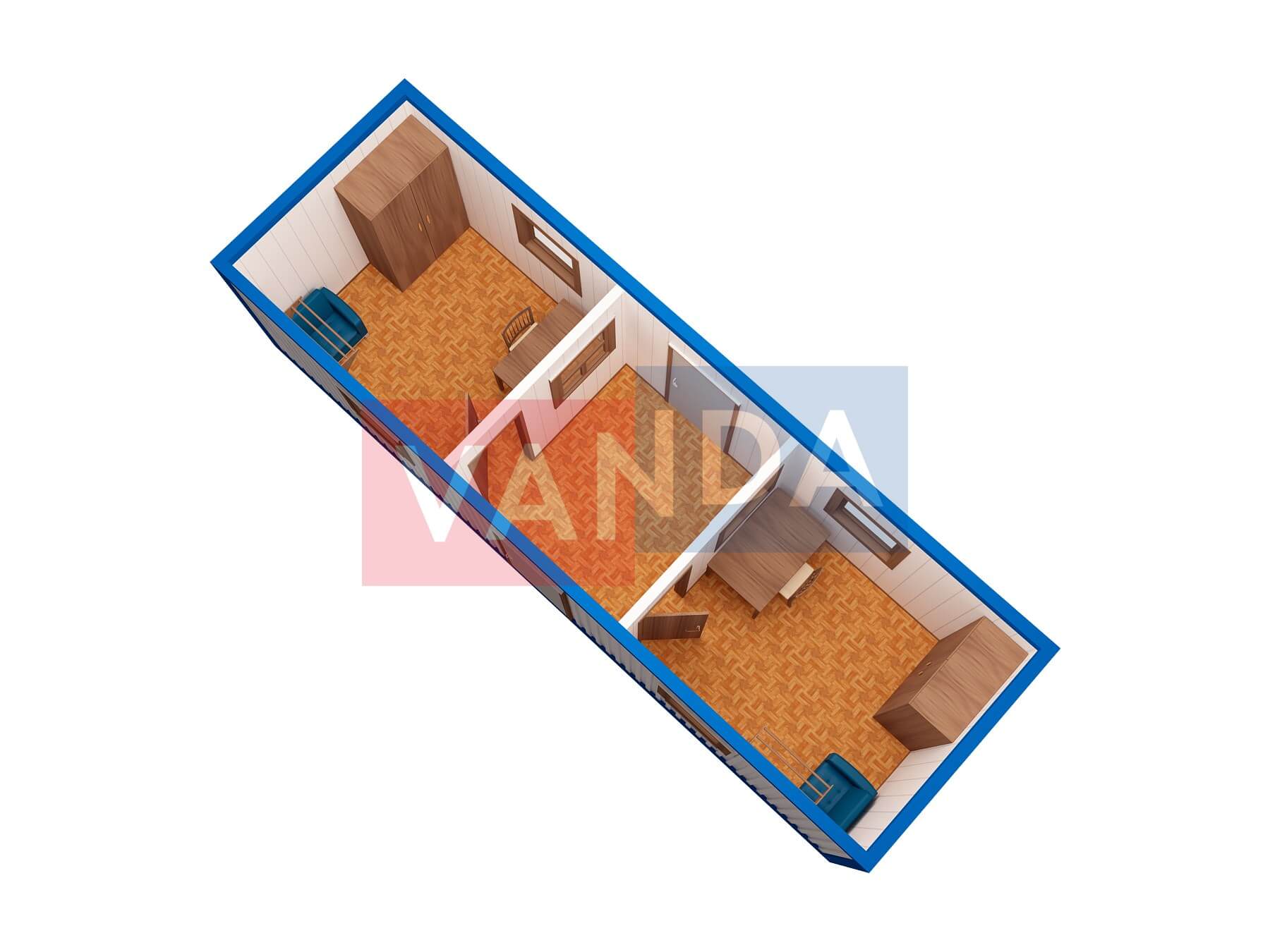 Синяя евробытовка с двуми окнами №1 (вариант 1)
