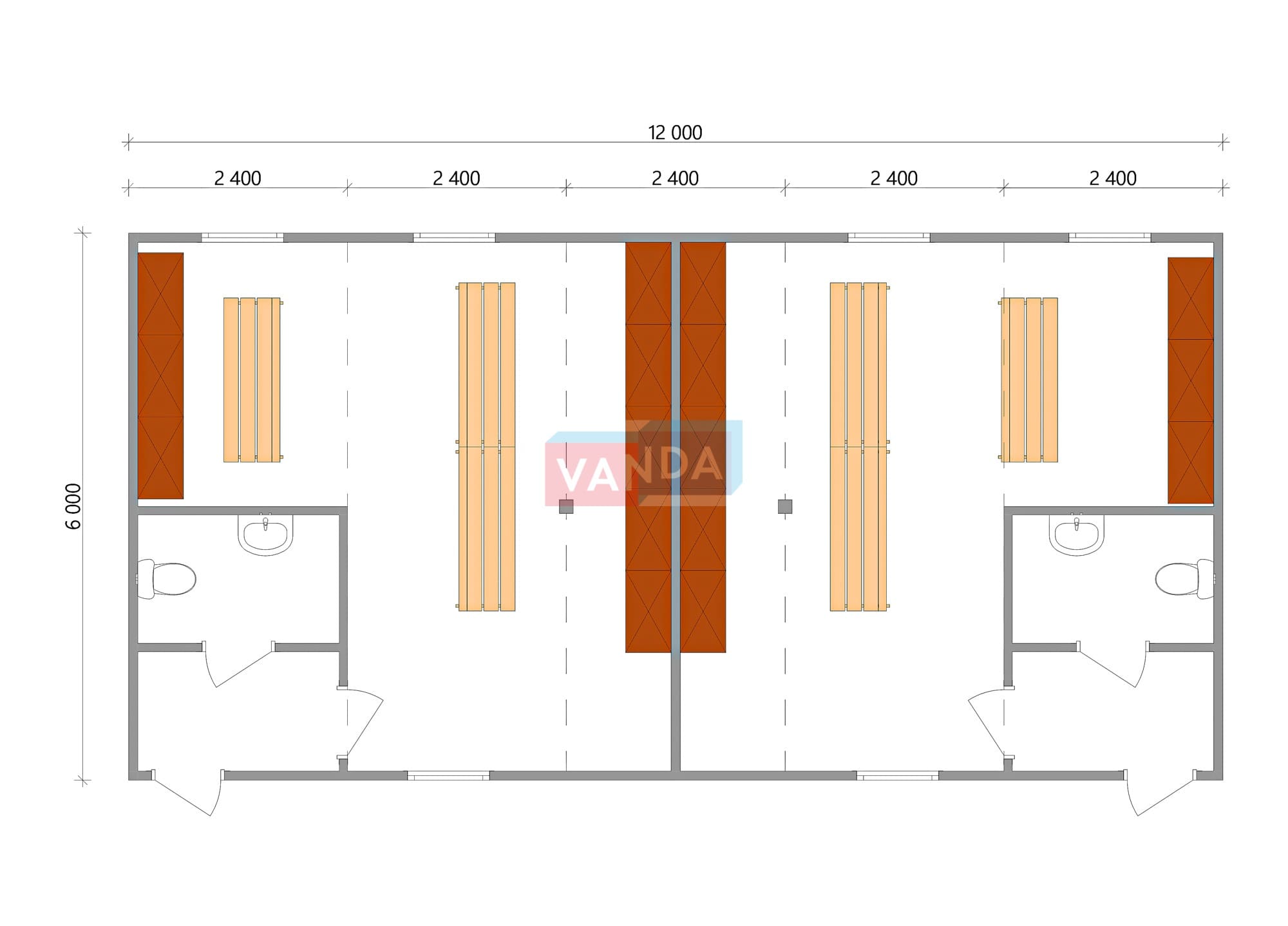 Проект модульной раздевалки 6.0х12